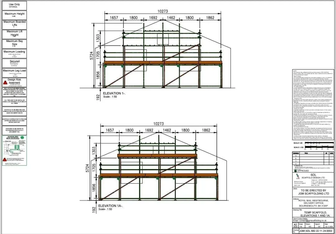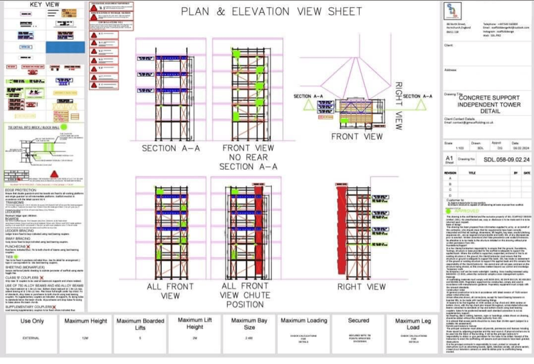 Our designs cover a wide range of scaffold types, from independent scaffolds to complex builds such as bridges, loading bays, and temporary roofs. All plans include the necessary risk assessments and calculation reports, ready for inspection or approval.